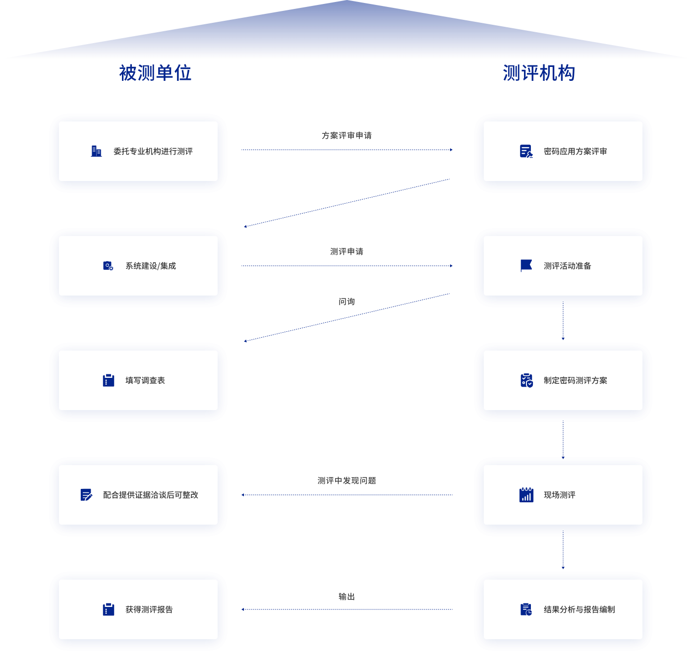 按照GB/T 39786-2021《信息安全技术信息系统密码应用基本要求》、GB/T 43206-2023《信息系统密码应用测评要求》、 GM/T 0116-2021《商用密码应用安全性评估测评过程指南》、2021版《信息系统密码应用高风险判定指引》、2023版《商用密码应安全性评估量化规则》、2023版《商用密码应用安全性评估FAQ(第三版)》、《商用密码应用安全性评估测评实施指引》、《商用密码应用安全性评估测评工具指引》等要求,开展技术和管理两方面评估。技术方面包含:物理和环境安全、网络和通信安全、设备和计算安全、应用和数据安全;管理方面包含:管理制度、人员管理、建设运行、应急处置。